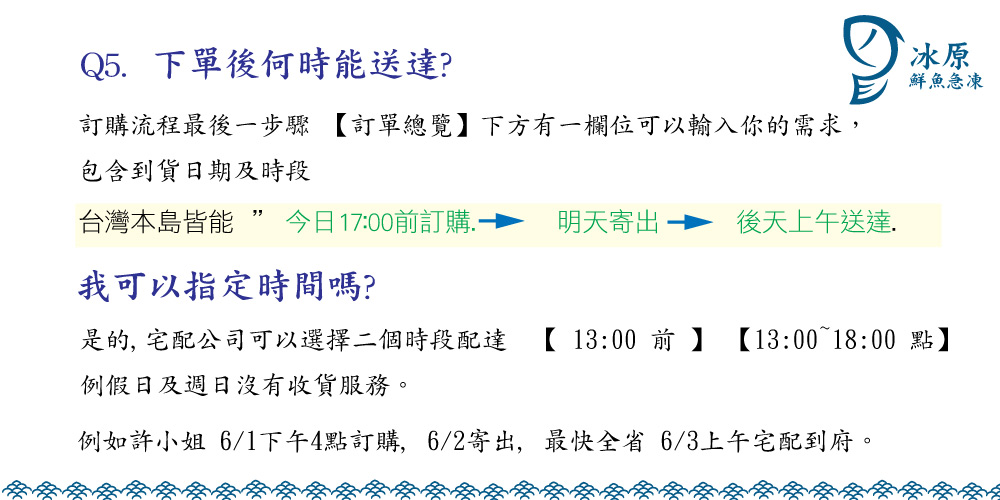Q5. 下單何時能配送到家?我能指定時段嗎?
